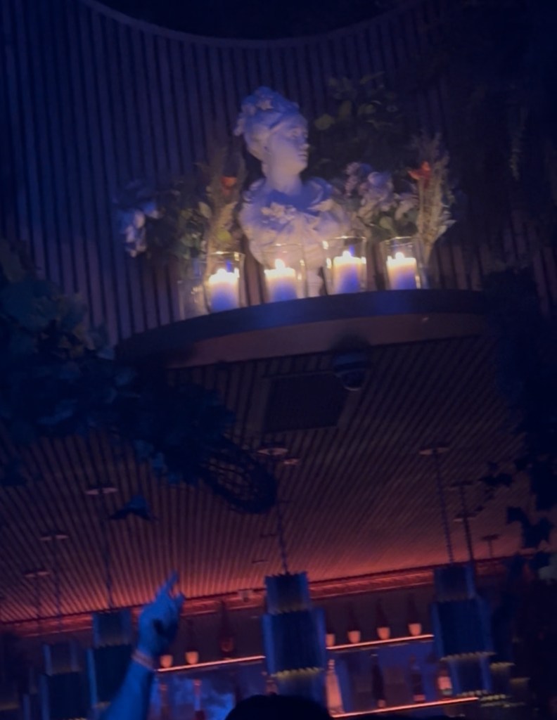 El espectáculo visual de luces que rebotan, acompañado por un juego de espejos, enriquece aún más la experiencia. Cada chispa y reflejo se convierten en símbolos del dinamismo del lugar, donde los extraños se unen en una experiencia colectiva de alegría. La presencia de una estatua en el techo, evocando un muestrario de arte, añade un aire de sofisticación a lo que, en su esencia, es una celebración de la vida.
